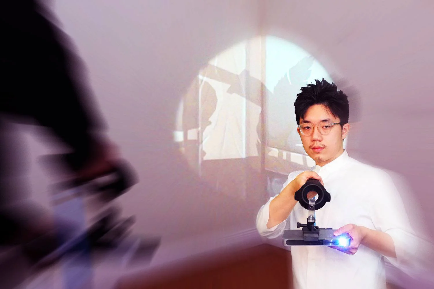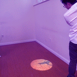 AR torchlight player unveils the hidden dimension in the real world through positional tracked portable projector superimposing virtual objects onto physical environment.