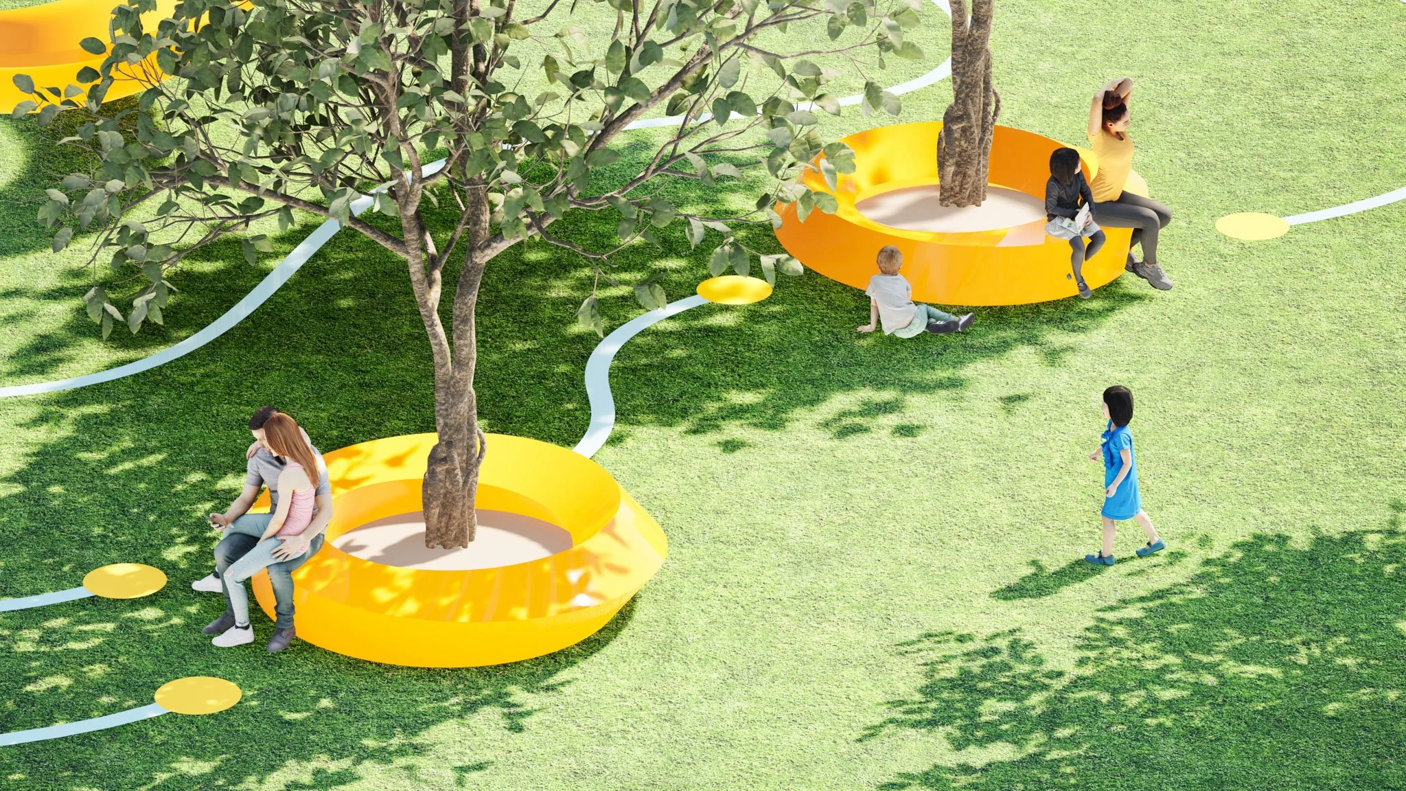 A network of paths connects all the playground structures. Visitors can choose their own route, with the challenge of passing by each piece exactly once without repeating a path.